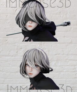 Nier Automata 2B Stl File, suitable for SLA/SLS (Resin) and FDM type 3D printers. Some models are shipped both with and without support.
