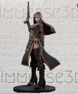 Nun Anime With Gun STL File, suitable for SLA/SLS (Resin) and FDM type 3D printers. Some models are shipped both with and without support.